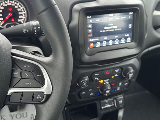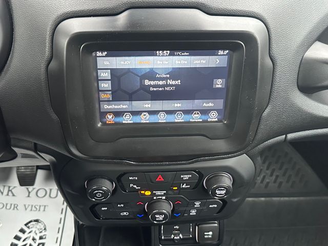 Dieser gepflegte Jeep Renegade aus dem Jahr 2019 bietet ein überzeugendes Gesamtpaket für Fahrer, die Alltagstauglichkeit mit SUV-Charakter verbinden möchten. Der Frontantrieb und der 120 PS starke Benzinmotor sorgen für eine angenehme Fahrleistung bei gleichzeitig moderatem Verbrauch. Die schwarze Metallic-Lackierung verleiht dem Fahrzeug einen eleganten Auftritt. Im Innenraum erwarten Sie eine automatische Klimaanlage, ein Multifunktionslenkrad in Leder und ein praktisches Start-Stopp-System. Der Renegade überzeugt mit umfangreicher Sicherheitsausstattung wie Front- und Seitenairbags, ESP, ABS, Spurhalteassistent und Reifendruckkontrolle. Für Komfort sorgen elektrische Fensterheber, elektrisch einstellbare Außenspiegel, Zentralverriegelung und Bluetooth-Konnektivität. Der Touchscreen und der Bordcomputer runden die moderne Ausstattung ab. Mit einer Länge von 4,24 m und einer Breite von 1,81 m bietet der Renegade kompakte Abmessungen bei gleichzeitig großzügigem Innenraum für fünf Personen.Hier finden sie das aktuelle Fahrzeugangebot unserer Gebrauchtwagen. Wir haben ständig neue Fahrzeuge zu Top Konditionen im Zulauf. Gerne nehmen wir ihr Fahrzeug in Zahlung und bieten Ihnen faire Finanzierungsmöglichkeiten.